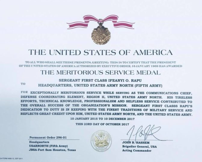 A distinguished Nigerian-born US soldier, Sergeant First Class, Ifeanyi