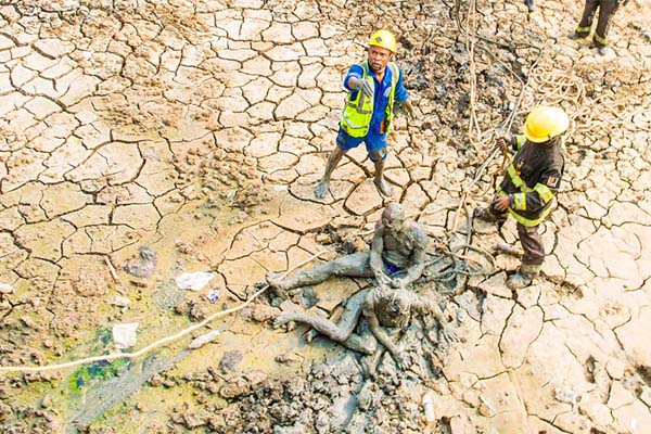 was trapped in mud under the popular 3rd Mainland Bridge in Lagos.