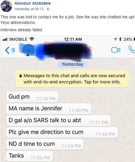 According to Mr Abiodun, a young lady who was asked to contact him for a