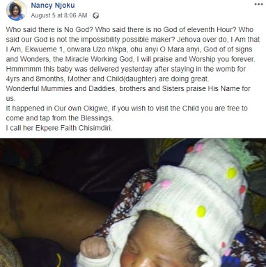 A lady, identified as Ada, who has been carrying her pregnancy for over 4