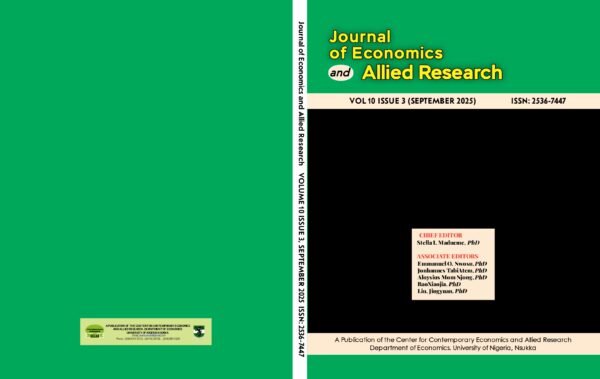 Journal of Economics and Allied Research (JEAR) is a peer-reviewed open access journal published by by the Centre for Economics and Allied Research, Department of Economics, University of Nigeria, Nsukka in collaboration with the K-Injo Publishing Limited. The journal accepts state of the art research in the following areas: All areas of mainstream economics as well as other areas such as education, environment, health, economics geography, development issues, social and cultural issues, petroleum and energy economics, political economy, and public policy. The journal publishes articles quarterly (March, June, September and December Issues). The journal can also publish more than four times a year depending on the rate of submission and also based on editorial board’s decision. Articles involving cross sectional, cross country, time series and panel studies are welcome. In selecting articles for publication (from articles that have passed the review process) the journal will endeavour to strike a balance among the subject areas and methodological approaches. In order to facilitate the speed of acceptance, articles addressing current economic problems or challenges with specific policy relevance will be given priority.