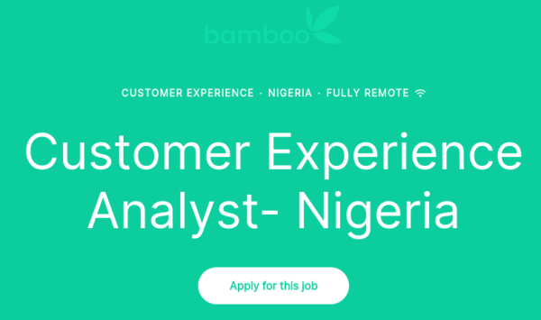 Bamboo Technology is hiring a Customer Experience Analyst to join their team in Lagos, Nigeria. As a Customer Experience Analyst, you’ll be the face of Bamboo, interacting with users and collecting feedback to improve their product.